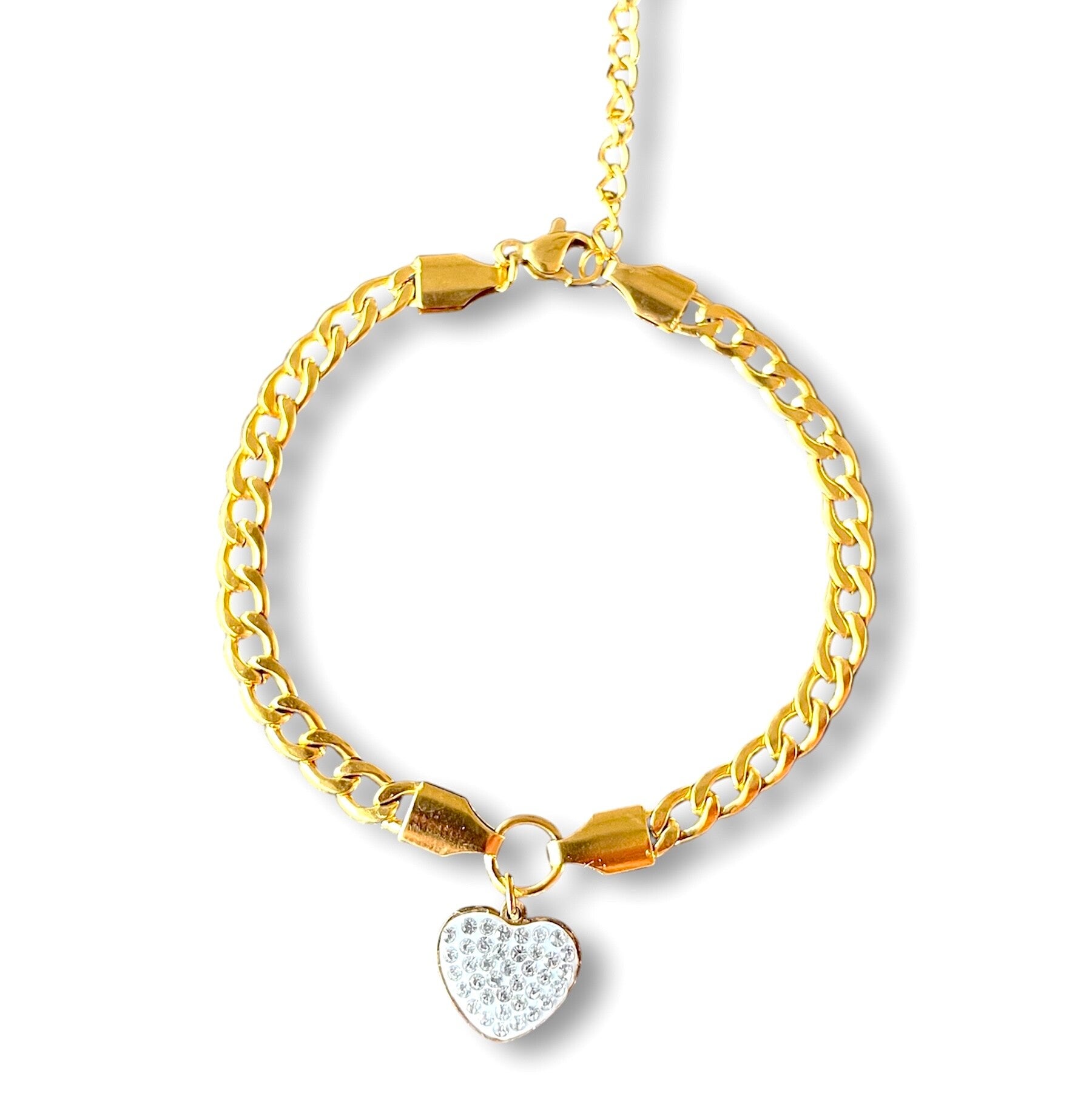 Diamond heart armband goud